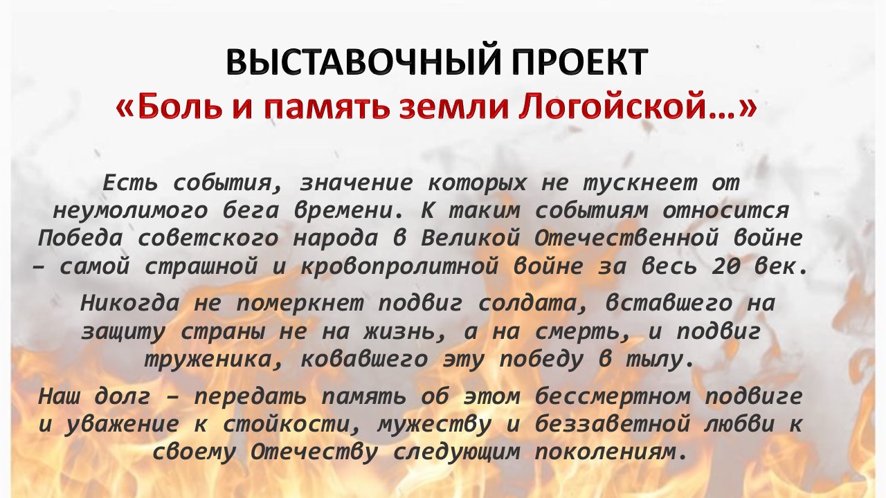 Уважаемые гости нашего сайта! В Логойском историко-краеведческом музее стартовал виртуальный выставочный проект «Боль и память земли Логойской…»: