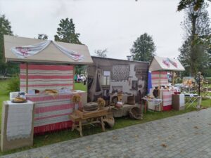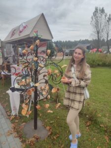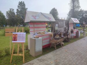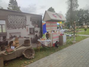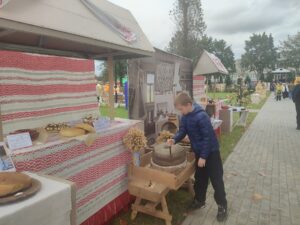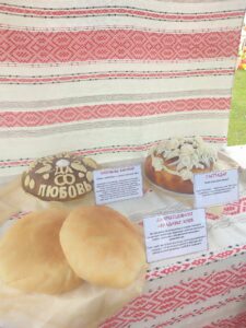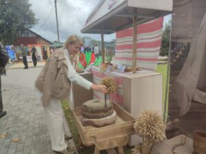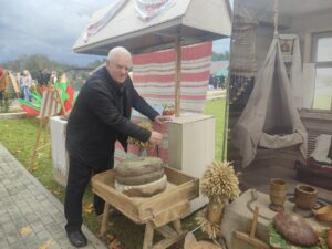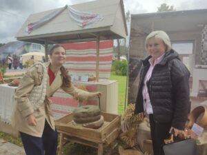 В минувшую субботумы приняли участие в районных Дожинках в аг. Октябрь в качестве Музея хлеба. В экспозиции были представлены предметы из фондов нашего музея, рассказывающие об истории рождения хлеба на территории Беларуси. А ароматные экспонаты передали меценаты из сельских и городских учреждений культуры и образования. Караваи «Гаспадар», «Памінальны», «Прывітальны», «Вясельны», «Навасельны», хлеб «Першы», «Дахрысціянскі», Пасхальный «Артос», птички » Буськи», специально привезенный с Любанщины уникальный «Жораўскі хлеб», рецепт которого внесен в гос.список ИКН, а также символ жизни и надежды — «Блокадный хлеб» можно было увидеть на нашей локации. И конечно же немного интерактива — гости с удовольствием мололи пшеничную муку с помощью настоящих жерновов и угощались булочками с «хлебного дерева».